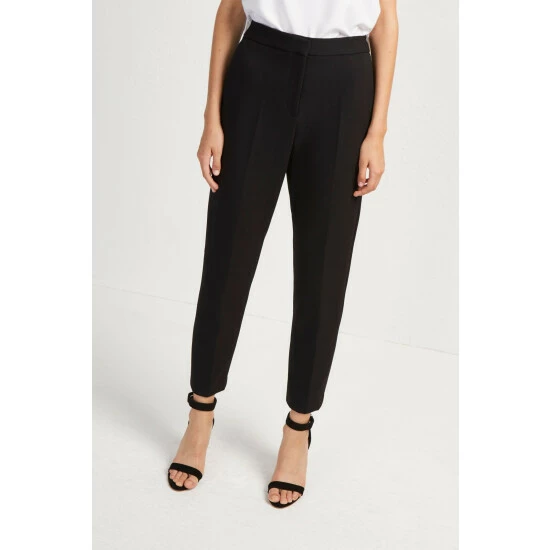 Refresh your work wardrobe with these slim fit trousers. Smooth glass stretch fabric will keep you looking crisp all day long. Pair with a simple blouse for a classic back to work look.