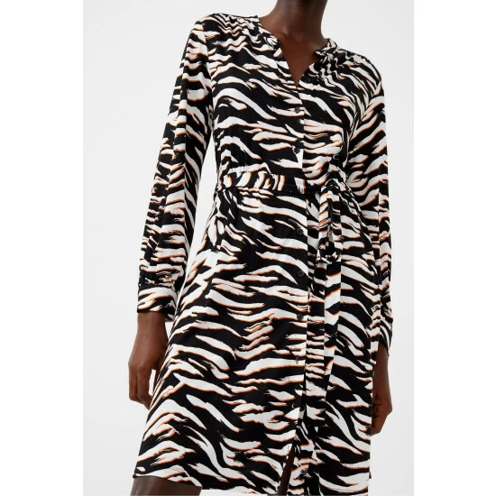 Bring the jungle into your wardrobe minus the effort with our Thita Dress. Printed with tonal tiger stripes, it features a V-neckline, long sleeves and fitted waist.