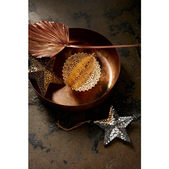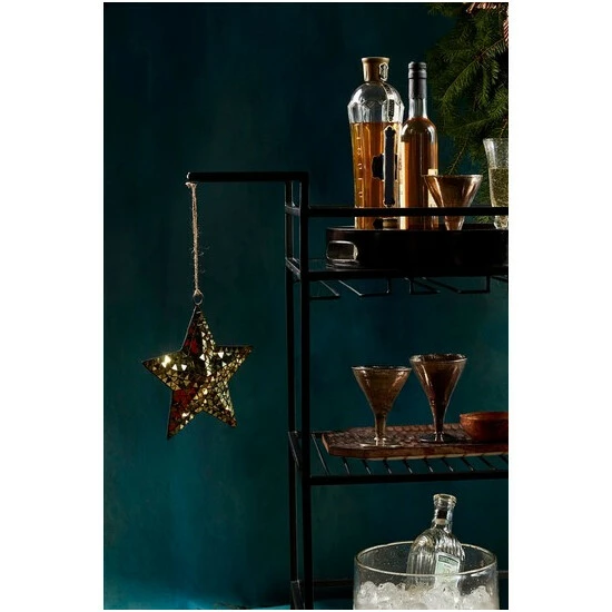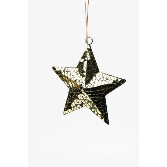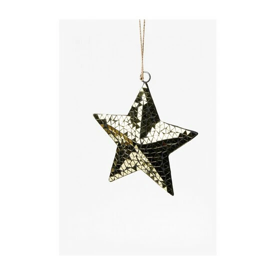 Go for glamour in your spaces with the Apollo Star Ornament. Designed with a delicate mosaic feel, created by the golden triangular glass, on a simple iron shape, the Apollo star is the perfect piece to add some sparkle to your home.Height: 21cm Width: 21cm Depth: 5cm