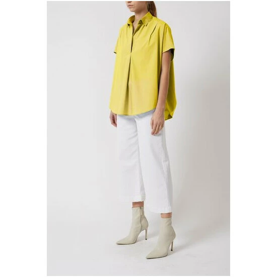 Your go to cotton shirting gets a fresh new look for summer. This simple cap sleeve design with added volume gives this oversized shirt a premium finish. Sizing is generous.