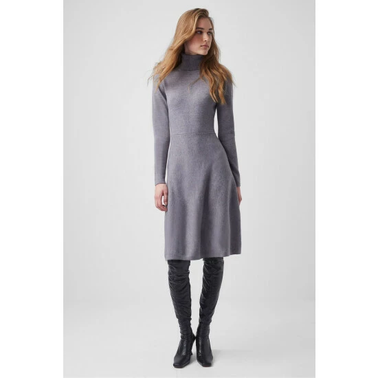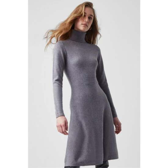 Welcome a fun-loving alternative to everyday jeans and T-shirt combinations. The Babysoft A-line mini dress is designed with a high neckline and long sleeves to envelop you in equal doses of warmth and style. Mini dress features long sleeves, high neckline, an A-line fit and a knit construction.