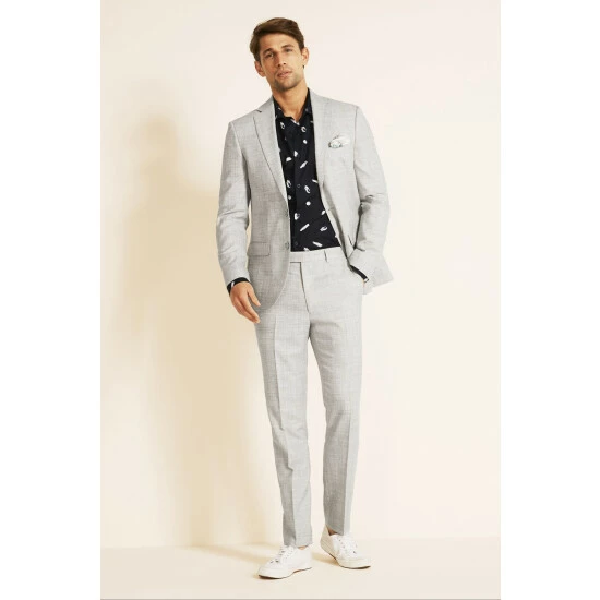 Step up your boardroom game in French Connection s slim-cut jacket. Created in light-grey flannel, it’s lined with eucalyptus-print material framed by piano facing for characteristic attention to detail. A pull-out pocket square offers flexible styling and pearl-effect buttons glint a little as the light catches.