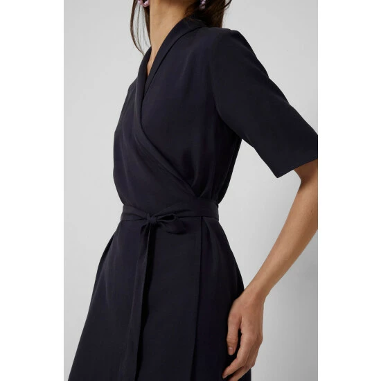 It is time to wrap up in style with the Aleena sinni lyocell wrap dress. Tie its free-flowing silhouette together with the matching belt and wear with either trainers or boots depending on the temperatures outside. French Connection promise the wrap-over design will help you to make a statement. Midi dress. V-neckline. Short sleeves. Self-tie fastening. Wrap design.