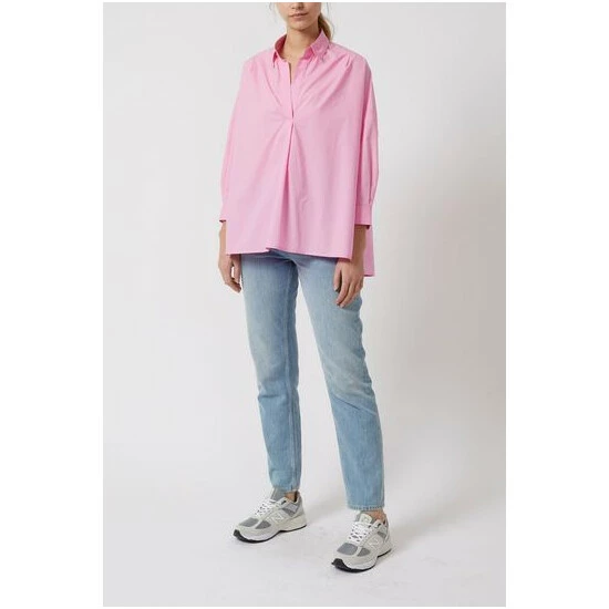 This classic cotton shirt is hits the scandi oversized trend perfectly. The classic point collar and V-neck give a flattering and feminine finish. Side vents allow you to complete an effortless demi tuck.