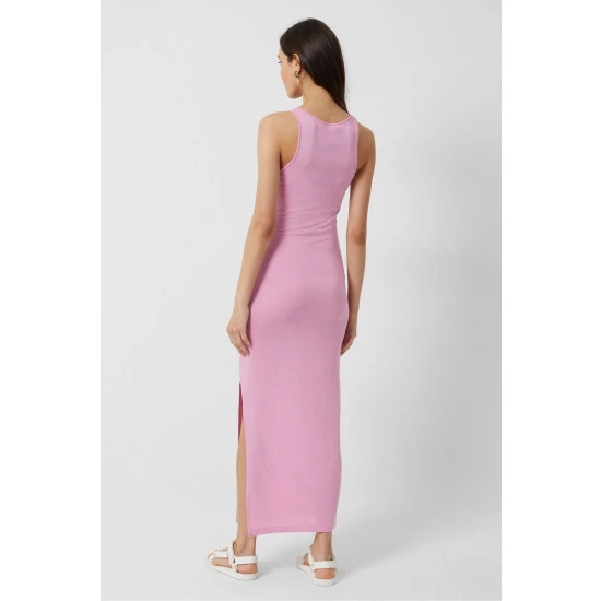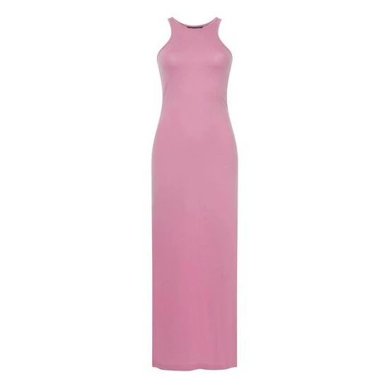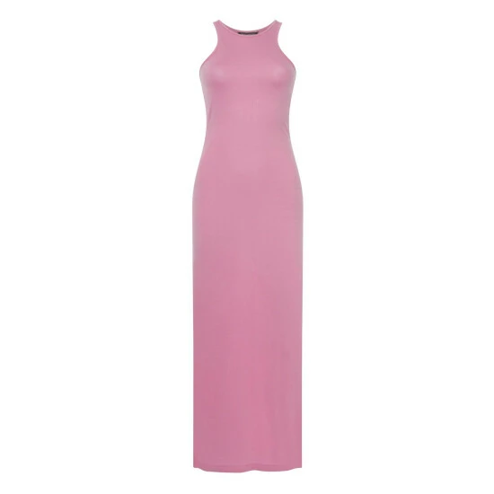 Knitted dress are all the rage. This simple tube dress with sporty race back neckline is perfect for warm summer days or layer with an oversized blazer for a classic street style look.