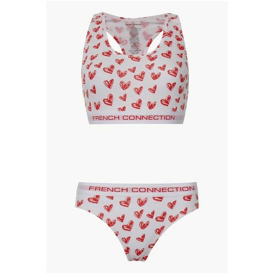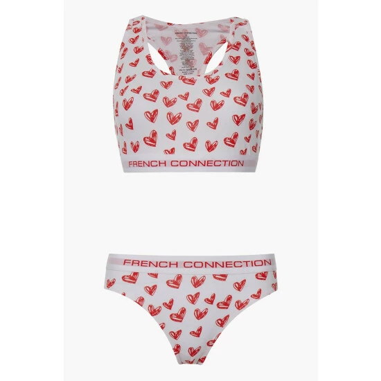 Revamp your top drawer with French Connection’s Crop Top and Briefs Set. The classic crop top and brief shape is brought to life with a graphic heart print and a contrasting French Connection logo.