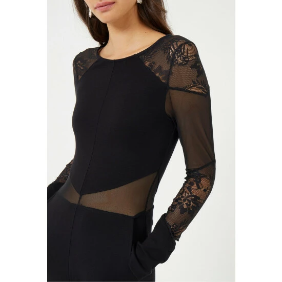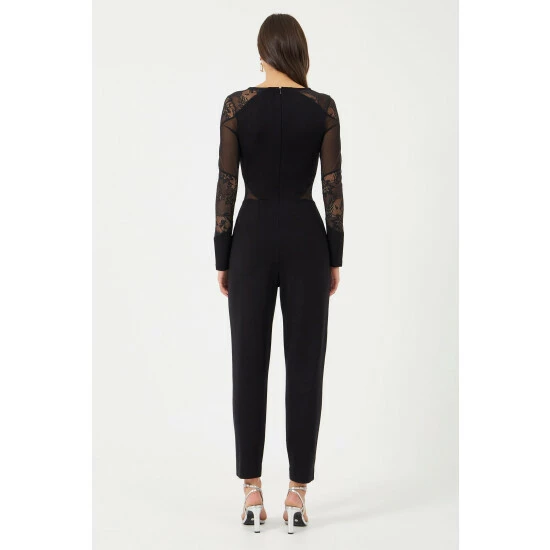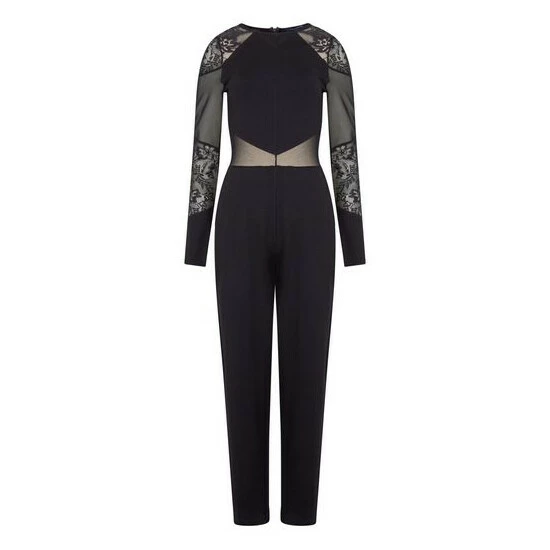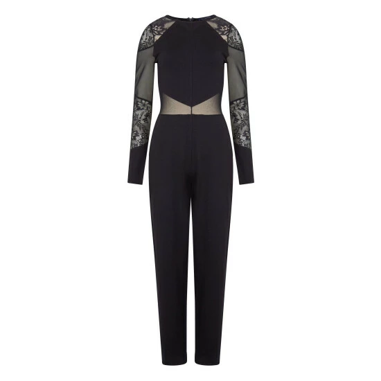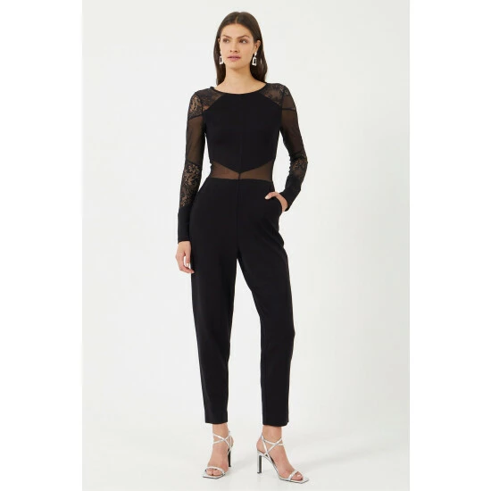 French Connection Vivien Black Panelled Long Sleeves Jumpsuit