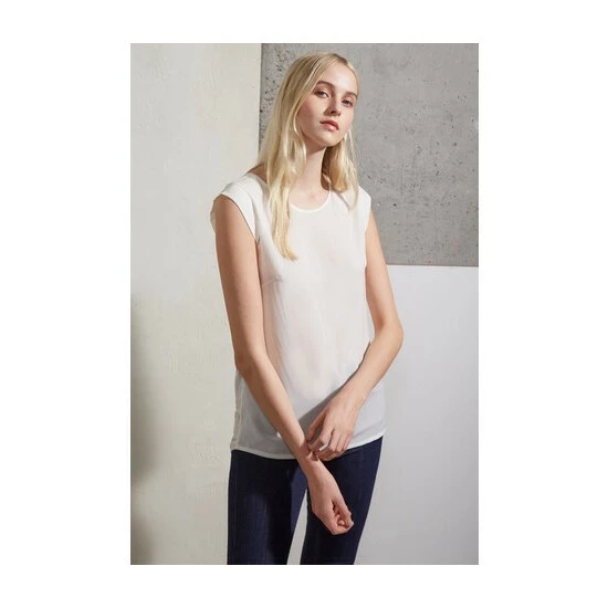 French Connection White Polly Plains Capped Sleeve T-Shirt