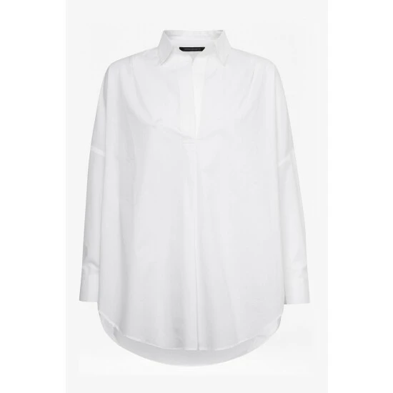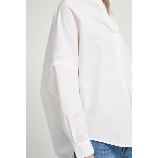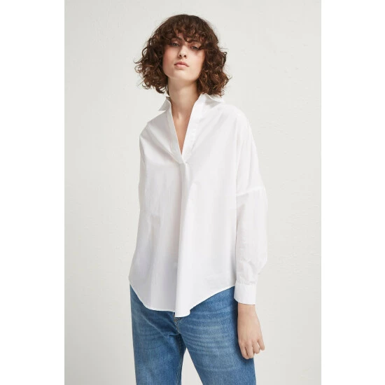 The Rhodes Poplin embodies effortless everyday style. Its oversized shape feels flattering and easy-wearing, featuring a relaxed collar, pleat back detailing and long sleeves. A dipped hem emphasises the casual nature of the shirt, ready to slip on with classic denim and trainers for comfortable style.