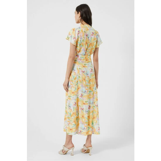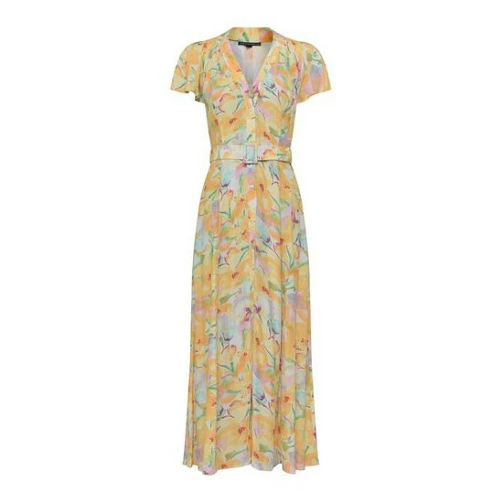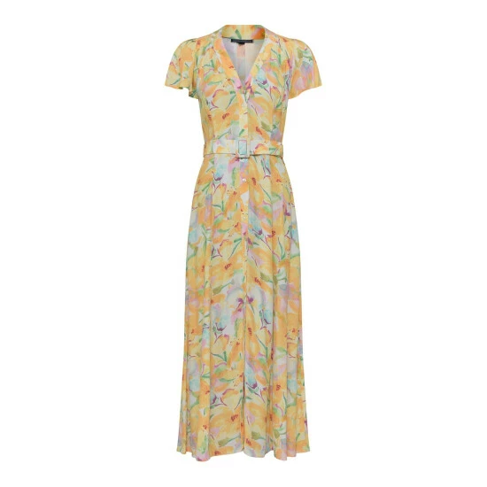 French Connection Yellow Isadora Delphine Short Sleeve Belted Maxi Dress